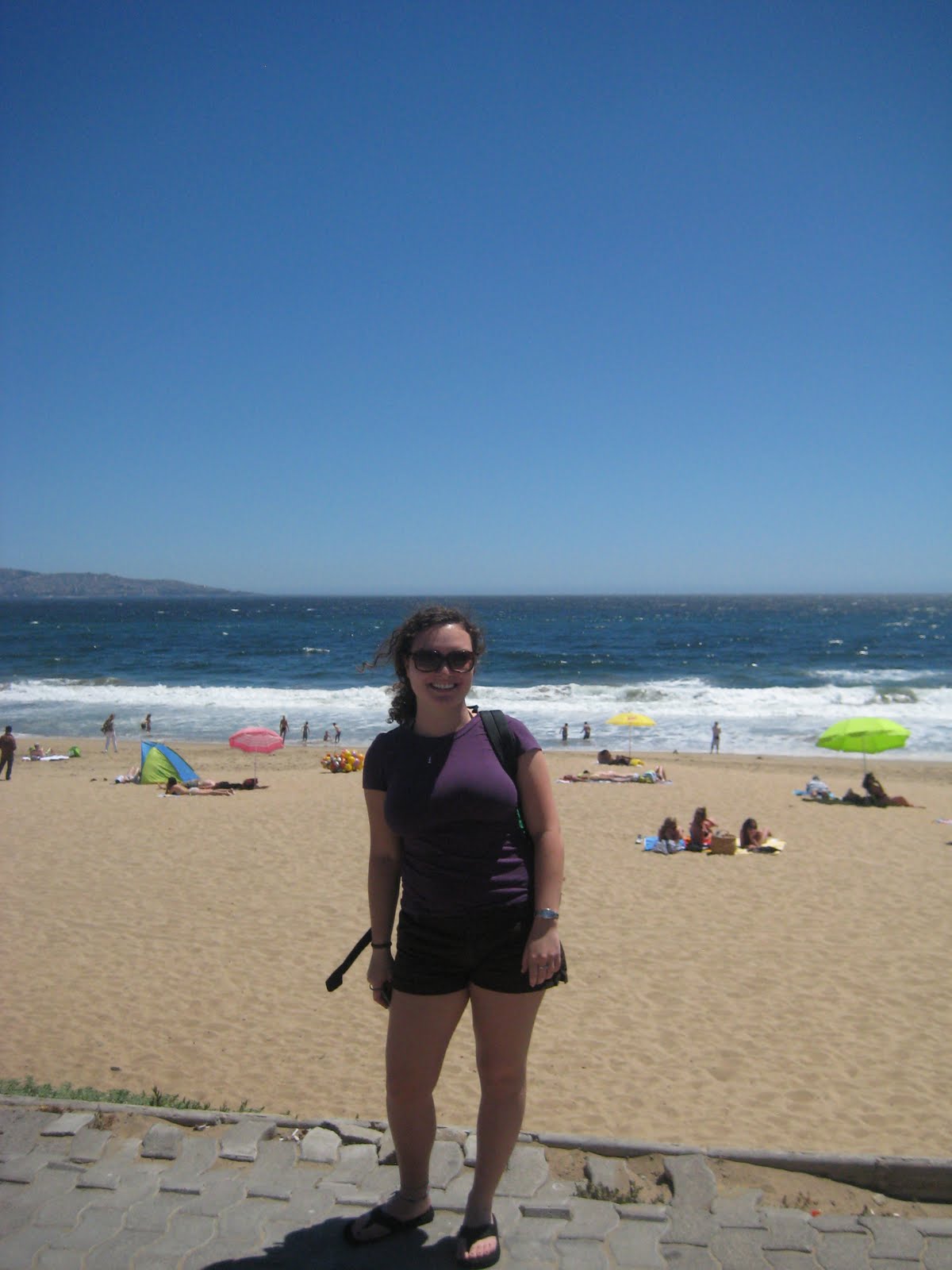 A big item on my to-do list was the beach in Viña del Mar. On Sunday it was 85 degrees and perfect beach weather. Diego gave me a beach recommendation and Katy and I decided to go for it. We took the bus from Santiago to Viña del Mar and then a micro to Reñaca. We stopped at a typical greasy Chilean restaurant for lunch and chowed down on a completo gigante and a churrasco with fries. The completo was much bigger than my hand but somehow we managed to finish everything. Once we felt sufficiently disgusting we headed to the beach and took in the sunshine. After an hour we could already see sunburn lines so we lathered ourselves with sunscreen but it was too late; the hole in the southern ozone took advantage of our reflecting white skin. The beach was fantastic and I loved soaking up the sun while thinking about the cold weather in Boston.