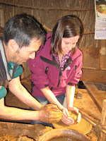 After trying the pottery wheel we went to another house that specialized in clay figures. The lady who lived there showed us how to make frogs, turtles, and pigs. Here are our attempts at making frogs and turtles.